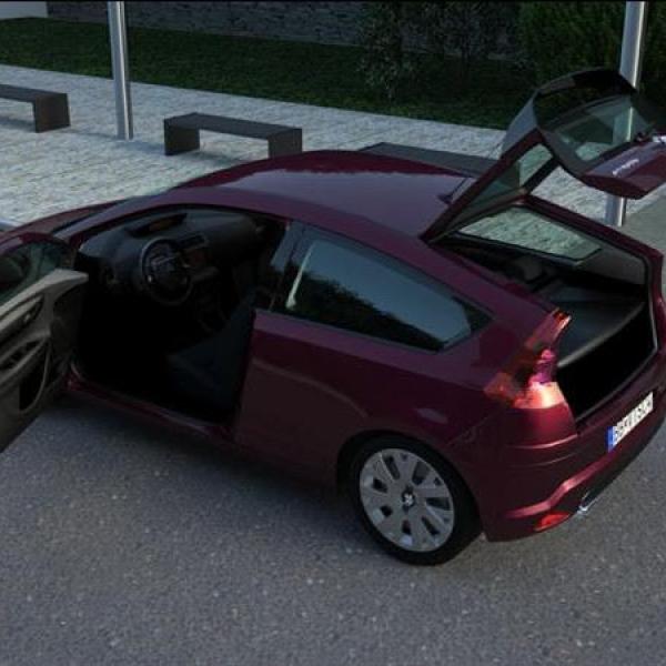 3D-Automodell speziell für Architekturvisualisierungen und 3D-Animationen. Realistisches, aber dennoch polygonsparendes Fahrzeug, steuerbar mittels xPresso