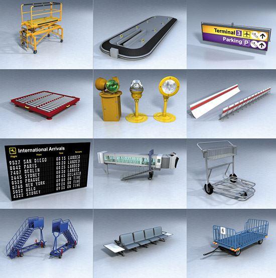 70 detaillierte 3D-Modelle von wichtigen Flughafen-Details.