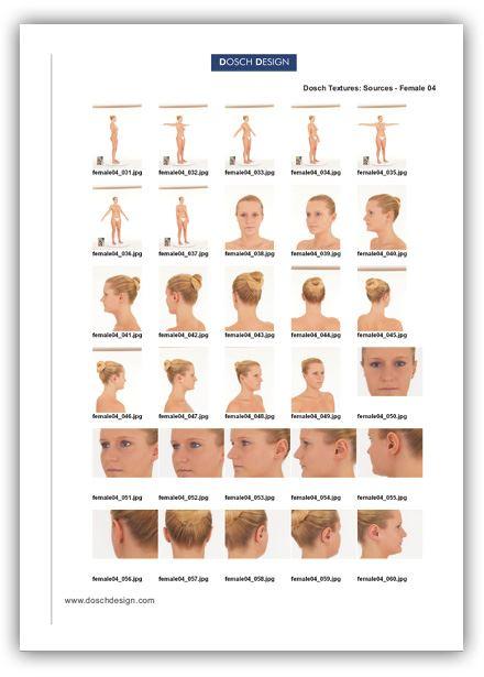 Verwenden Sie die professionellen Aufnahmen des weiblichen Models um Texturen für Ihre ganz individuellen 3D-Charaktere zu erstellen.