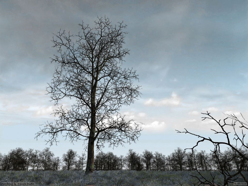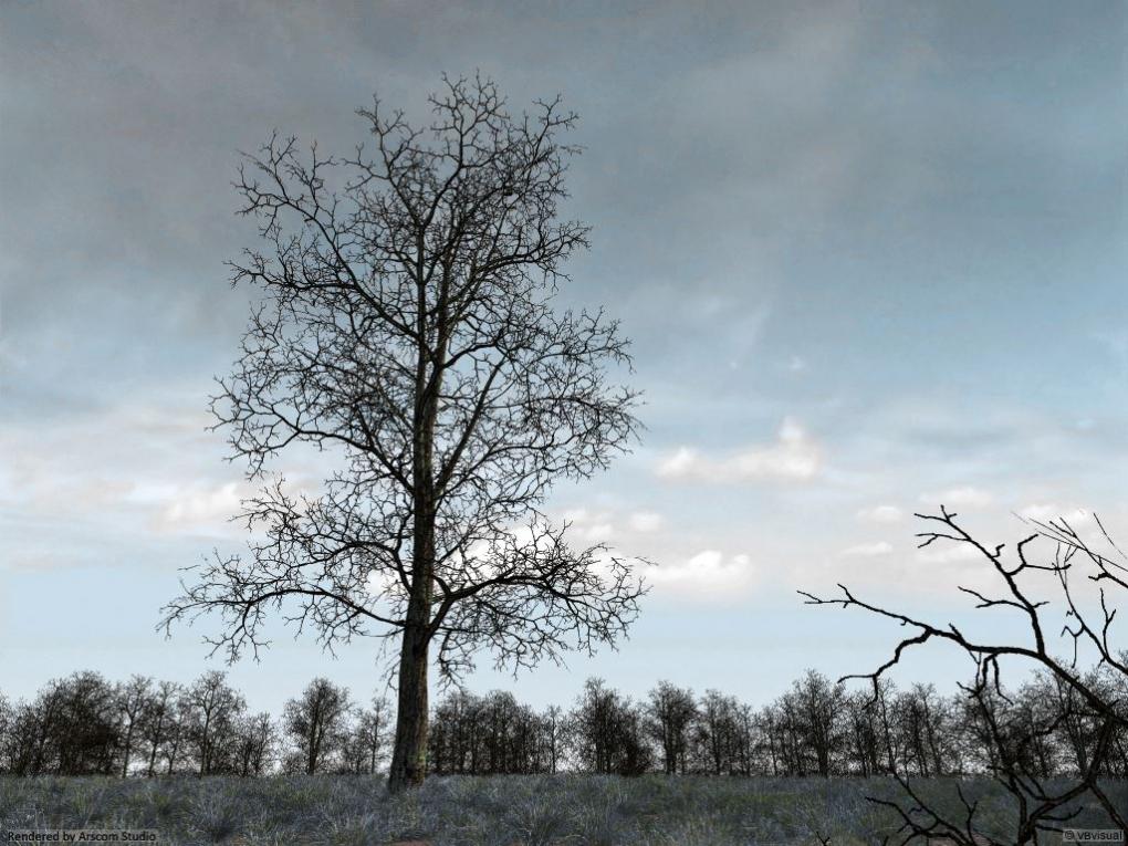 Ca. 5000 Polygone für einen Baum (1500 - max. 8000). Das bedeutet enorme Entlastung des Rechners. Auch Dateien mit vielen Pflanzen lassen sich damit problemlos handhaben. |